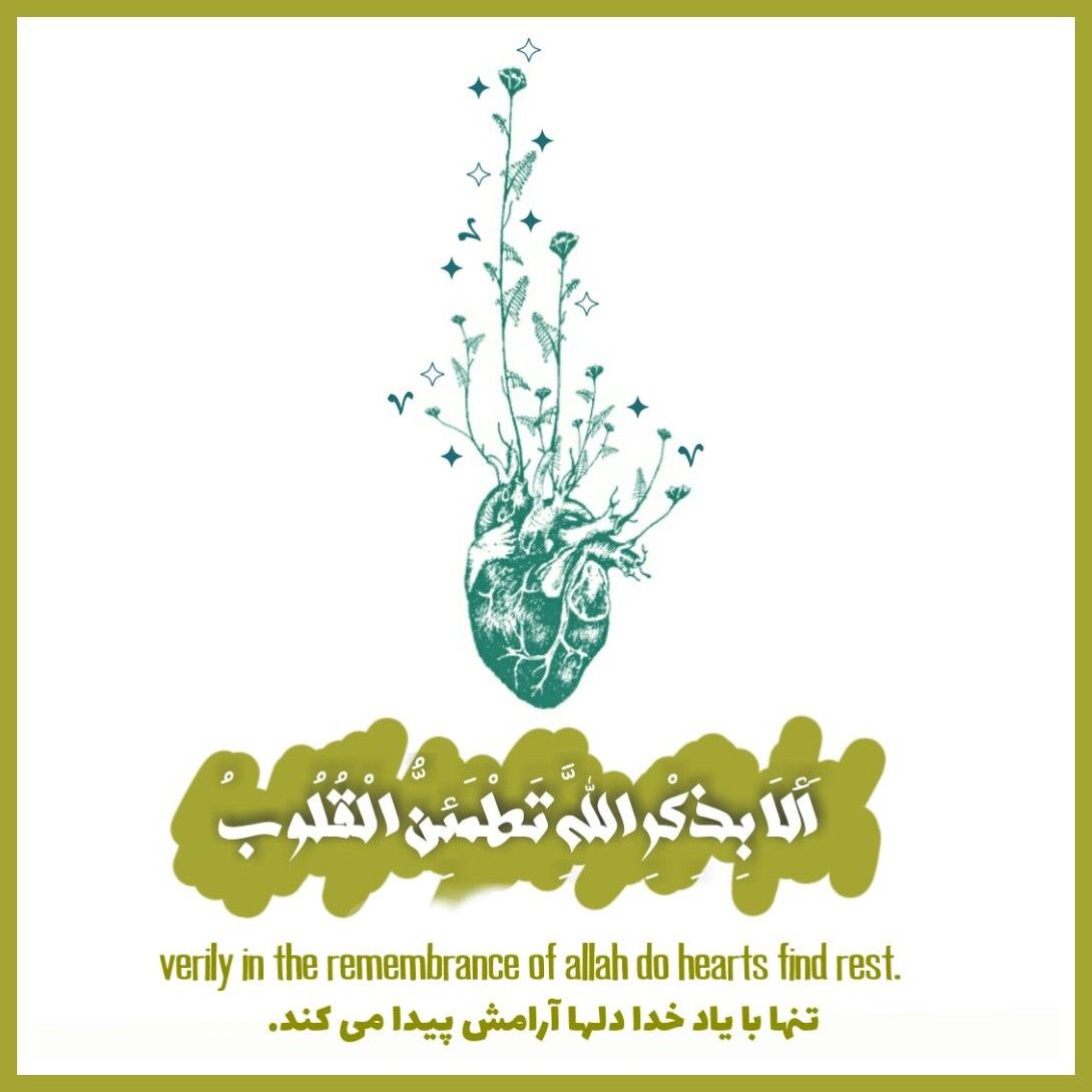 أَلَا بِذِكْرِ اللَّهِ تَطْمَئِنُّ الْقُلُوبُ Verily In The Remembrance Of Allah Do Hearts Find Rest. تنها با یاد خدا دلها آرامش پیدا می کند. ➕